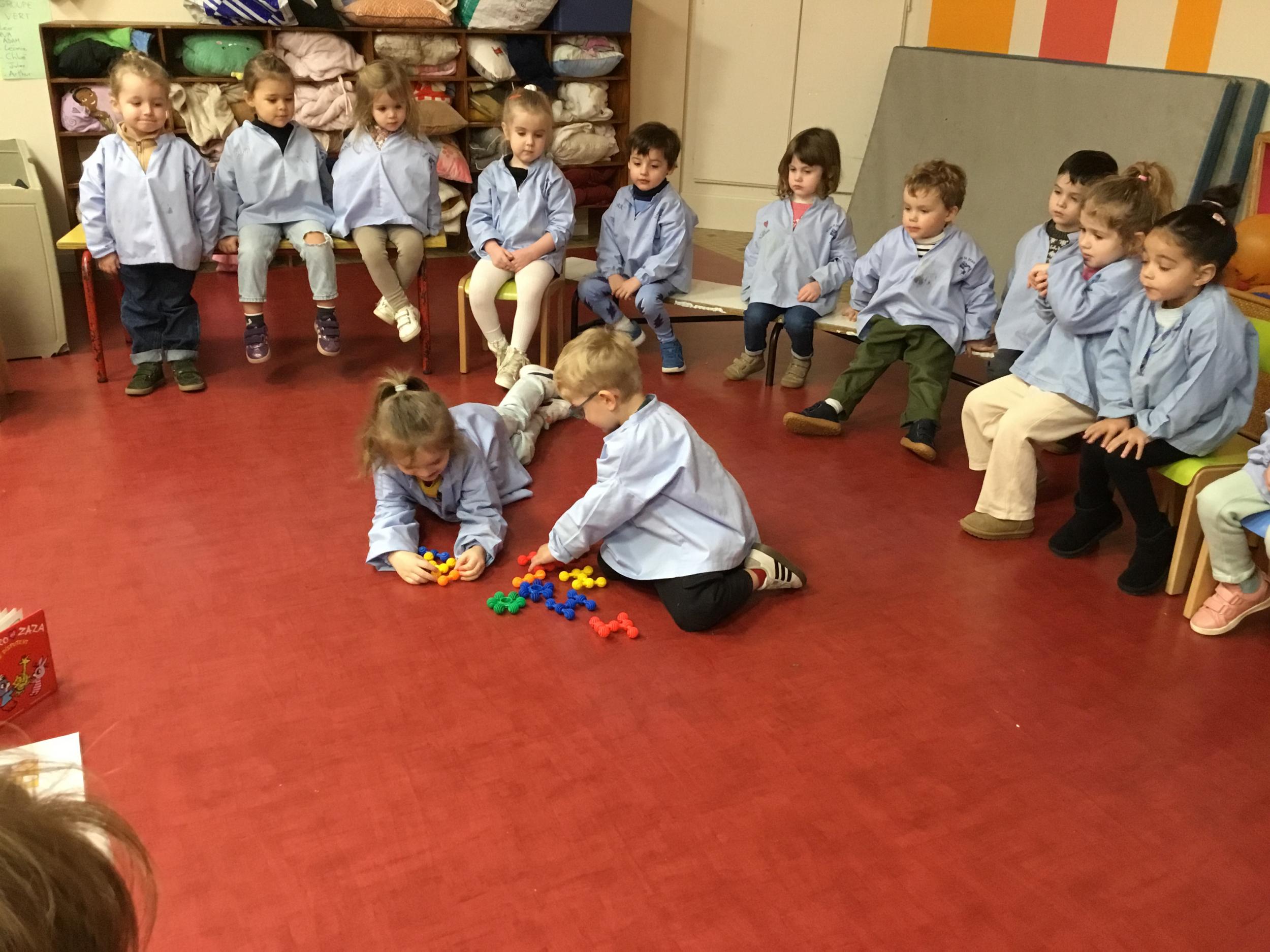 Les enfants ont joué la scène. L’un des enfants avait pour consigne de prendre tous les clips sans en laisser un seul à son camarade. Nous avons alors observé l’attitude de l’enfant qui n’a plus de jouet. Puis chacun a pu exprimer ce qu’il ressentait .