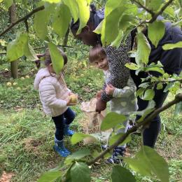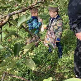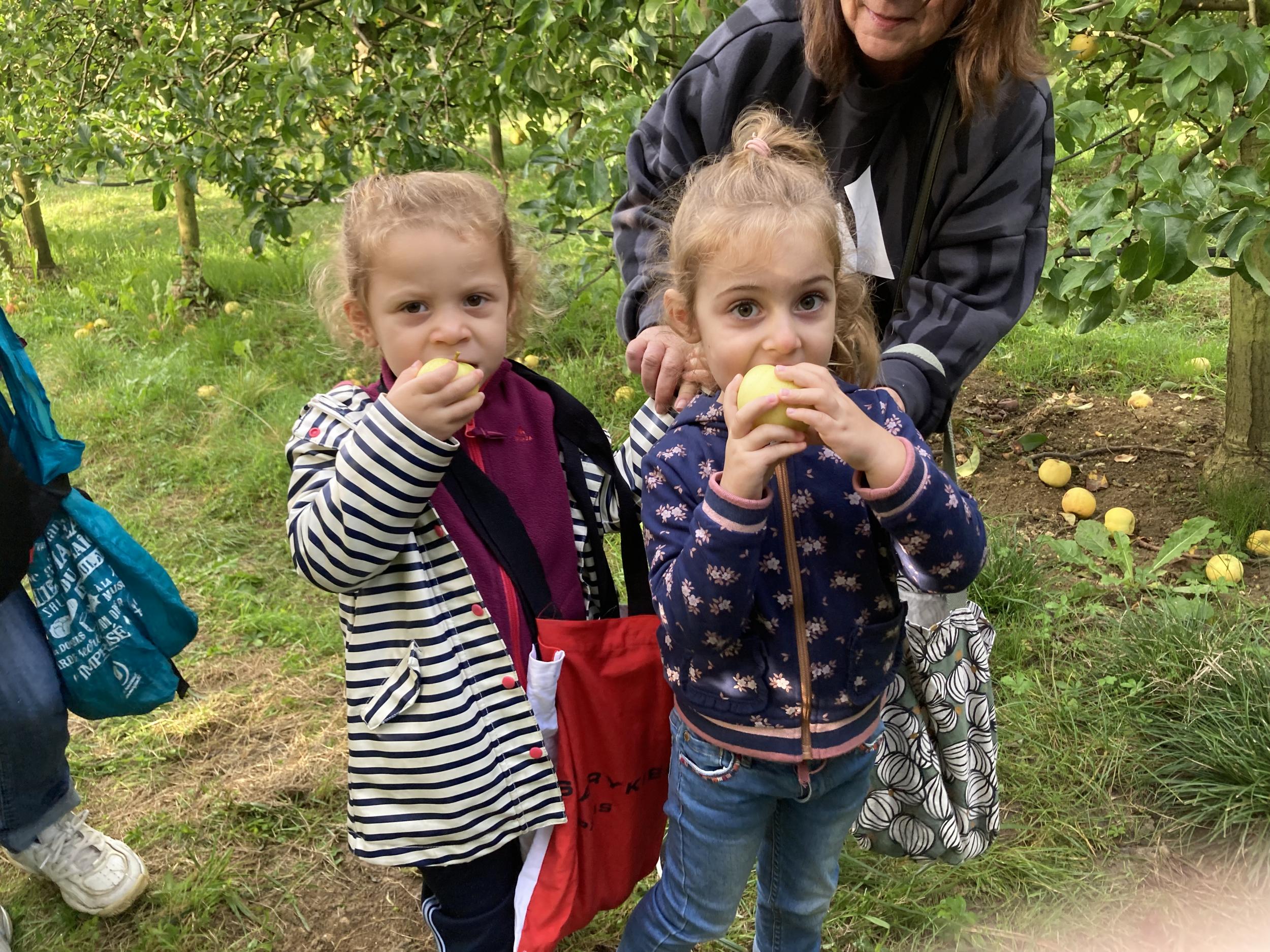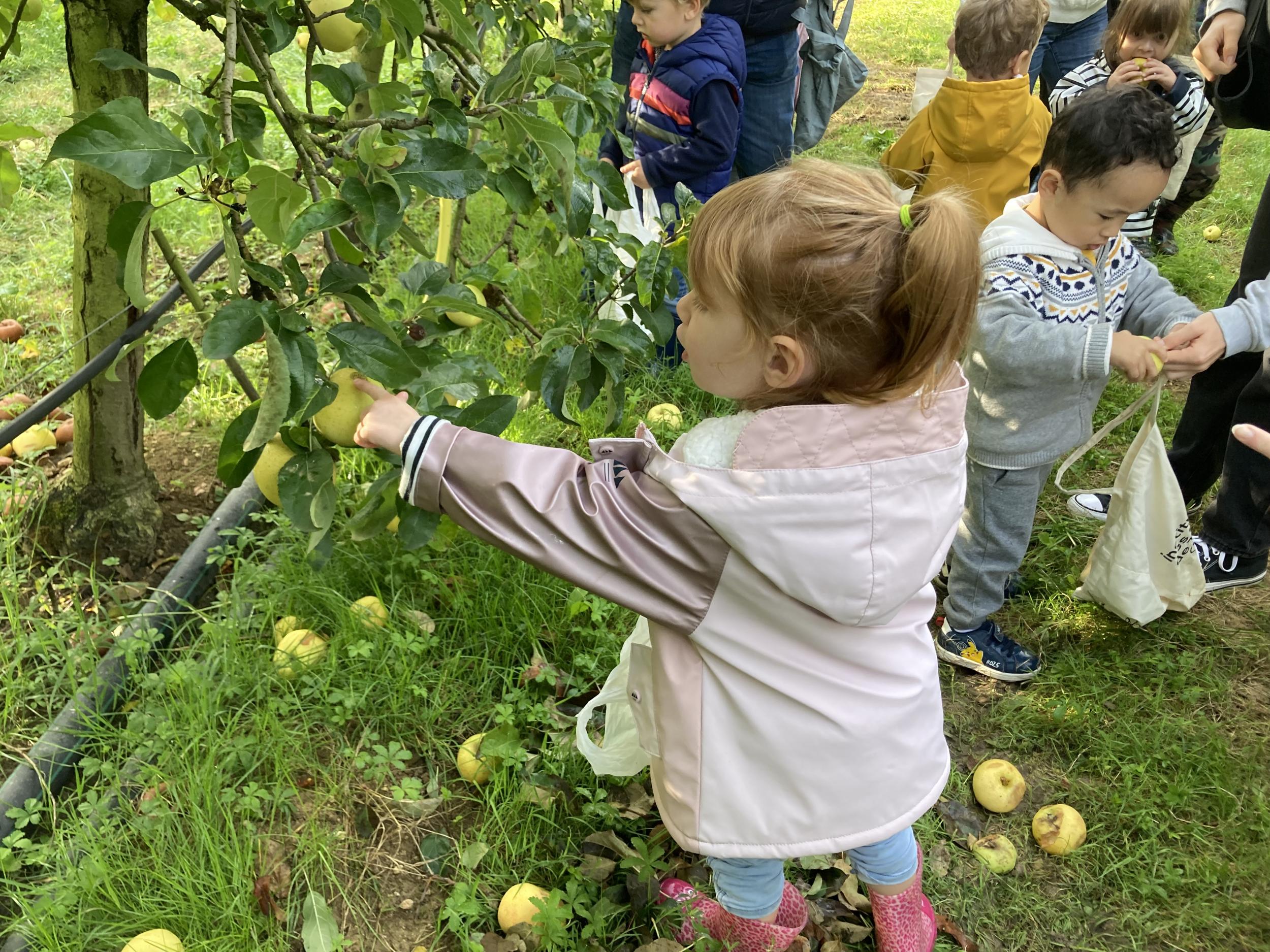 Les PS, MS et GS ont pris le bus pour se rendre au verger de Montdragon . Nous avons fait une belle cueillette. Mais avant cela, avec les PS nous avions lu l’affiche …les élèves avaient fait des hypothèses à partir des photos et avaient donné du sens à cet écrit .Car lire : c’est faire des hypothèses de sens et le vérifier par le décodage .