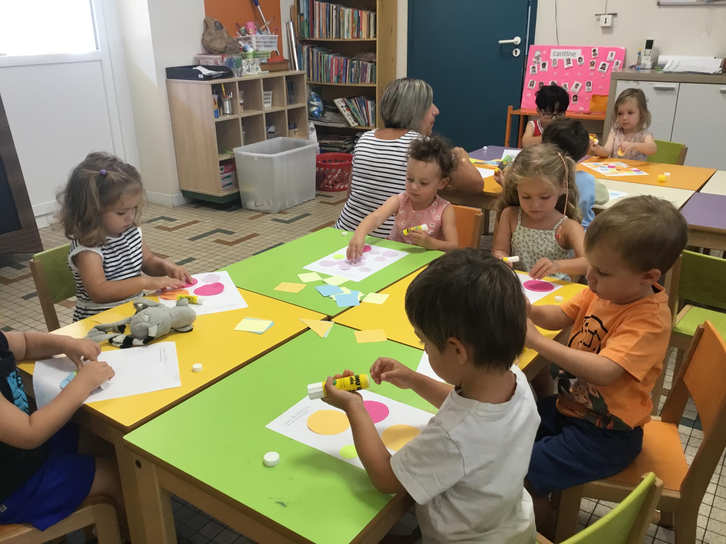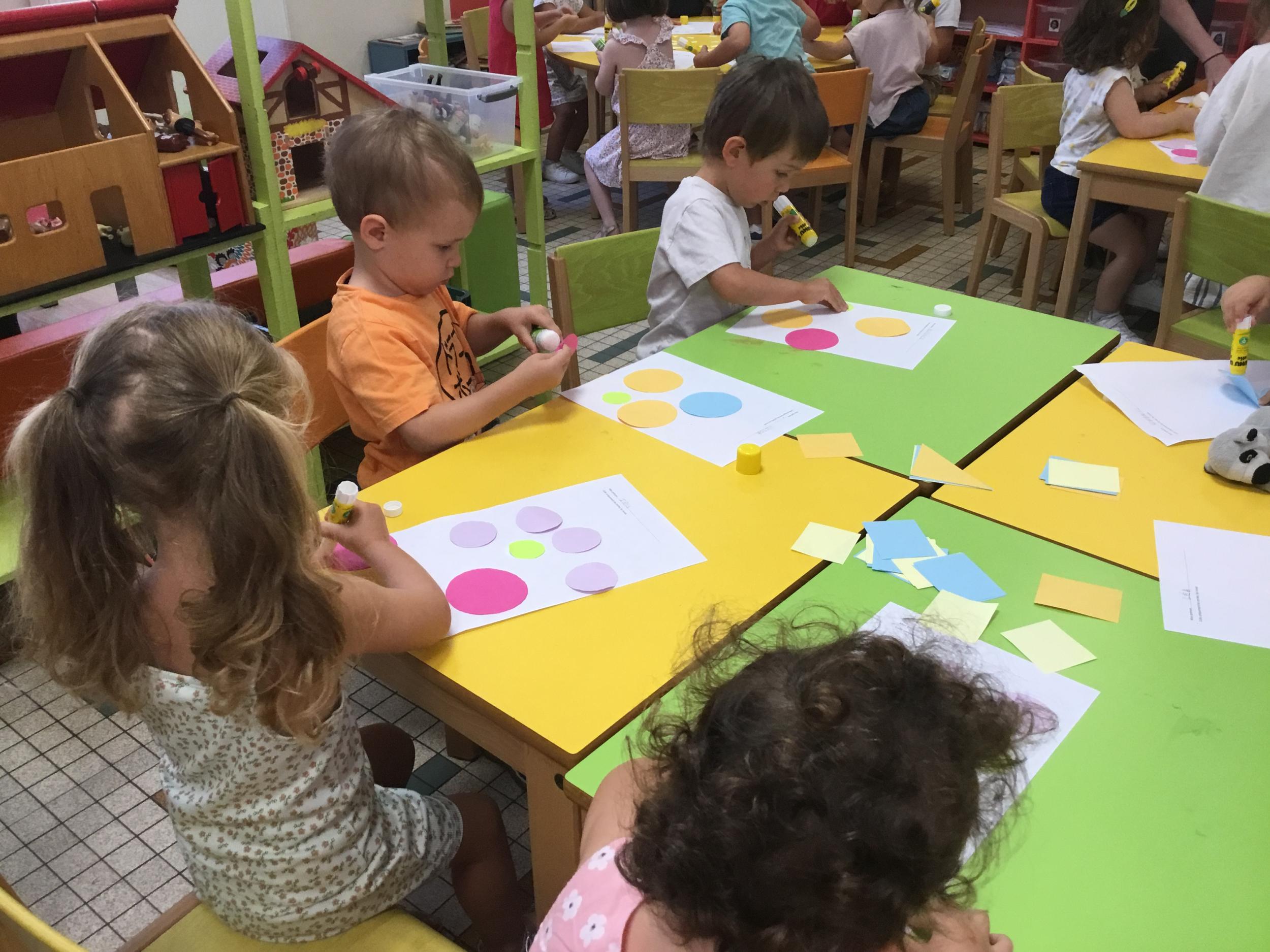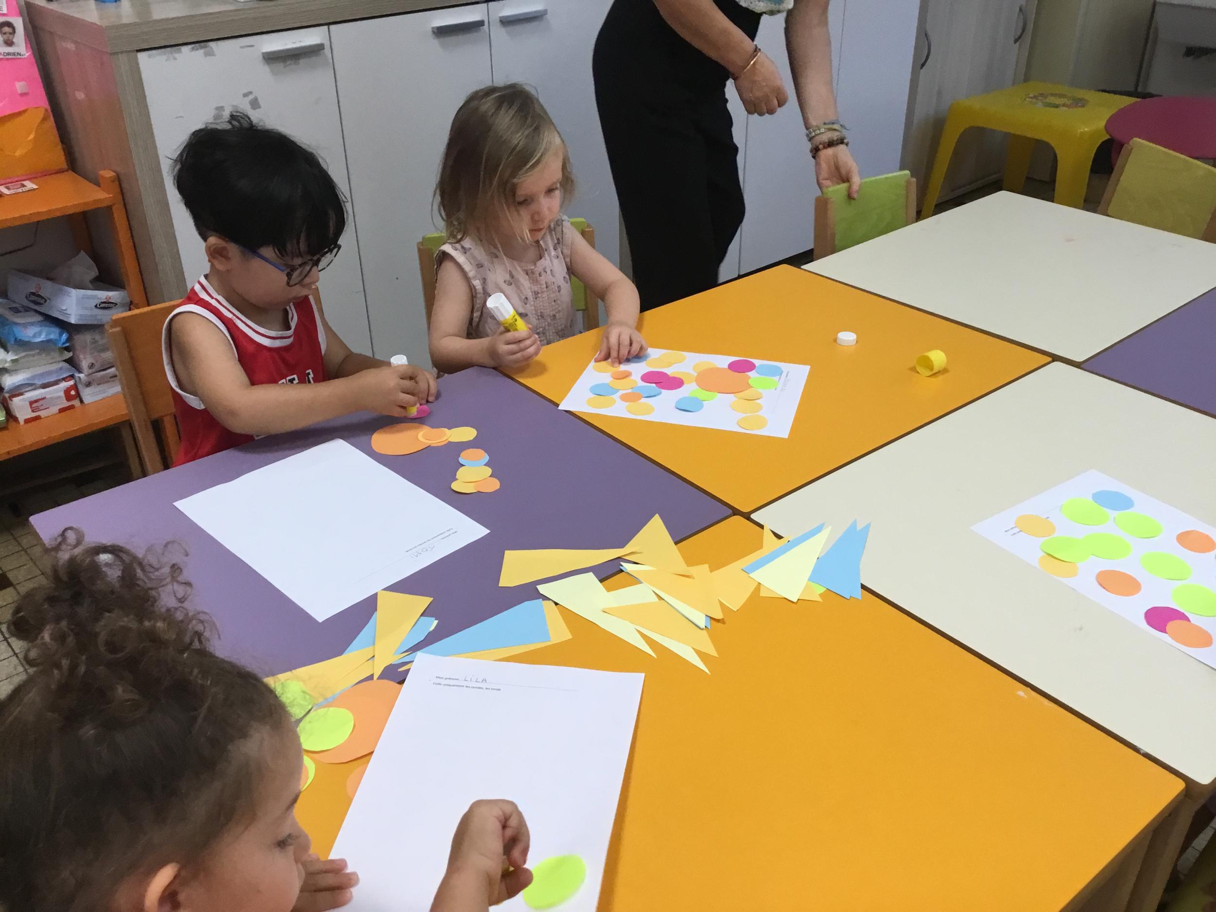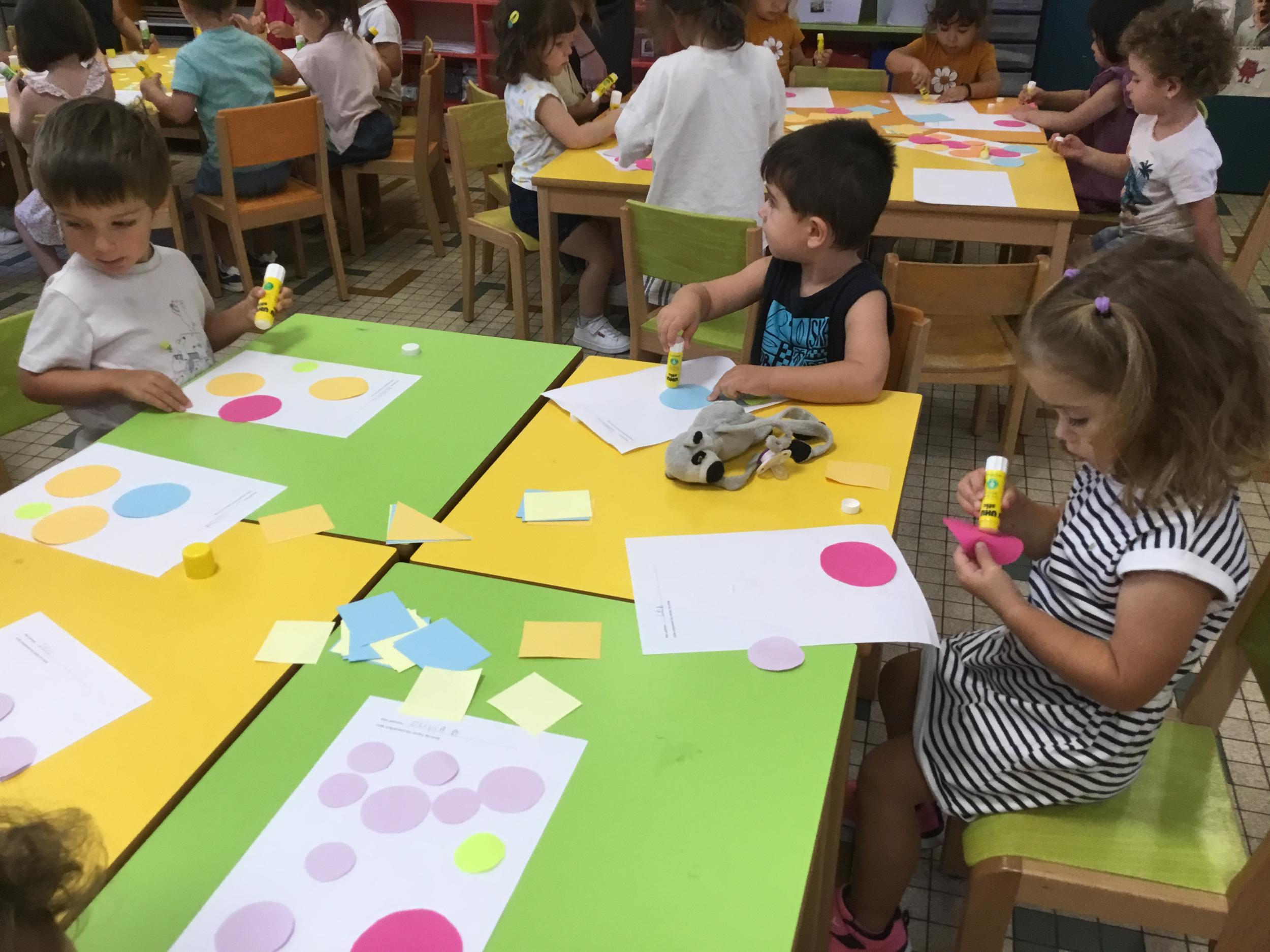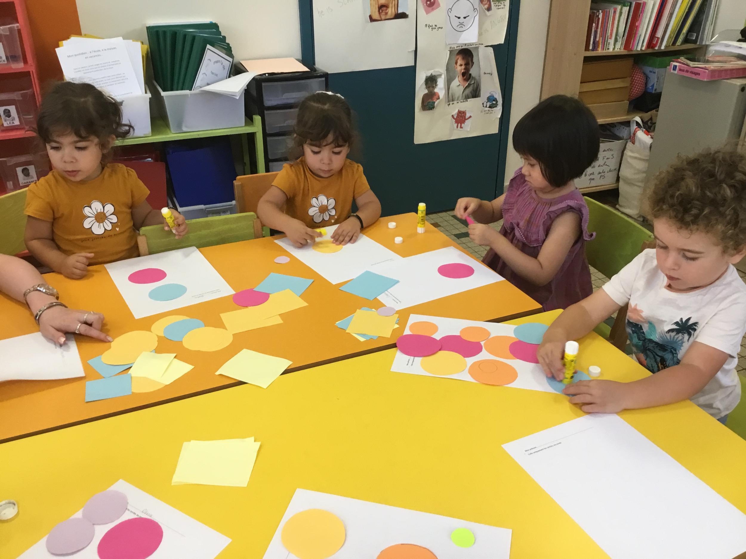 Aujourd’hui j’ai demandé aux élèves de décorer la feuille uniquement avec les cercles , que l’on appelle aussi des ronds.