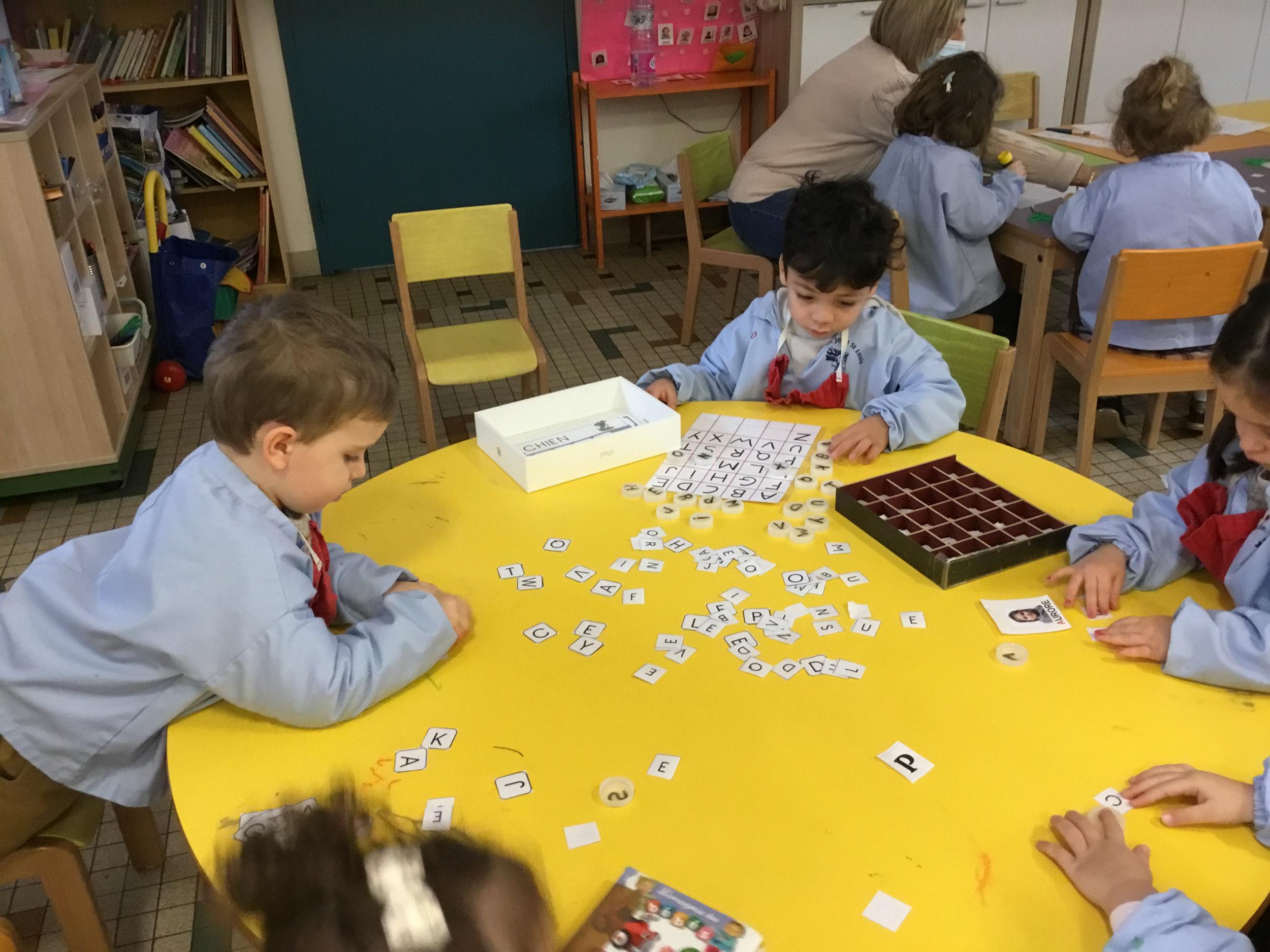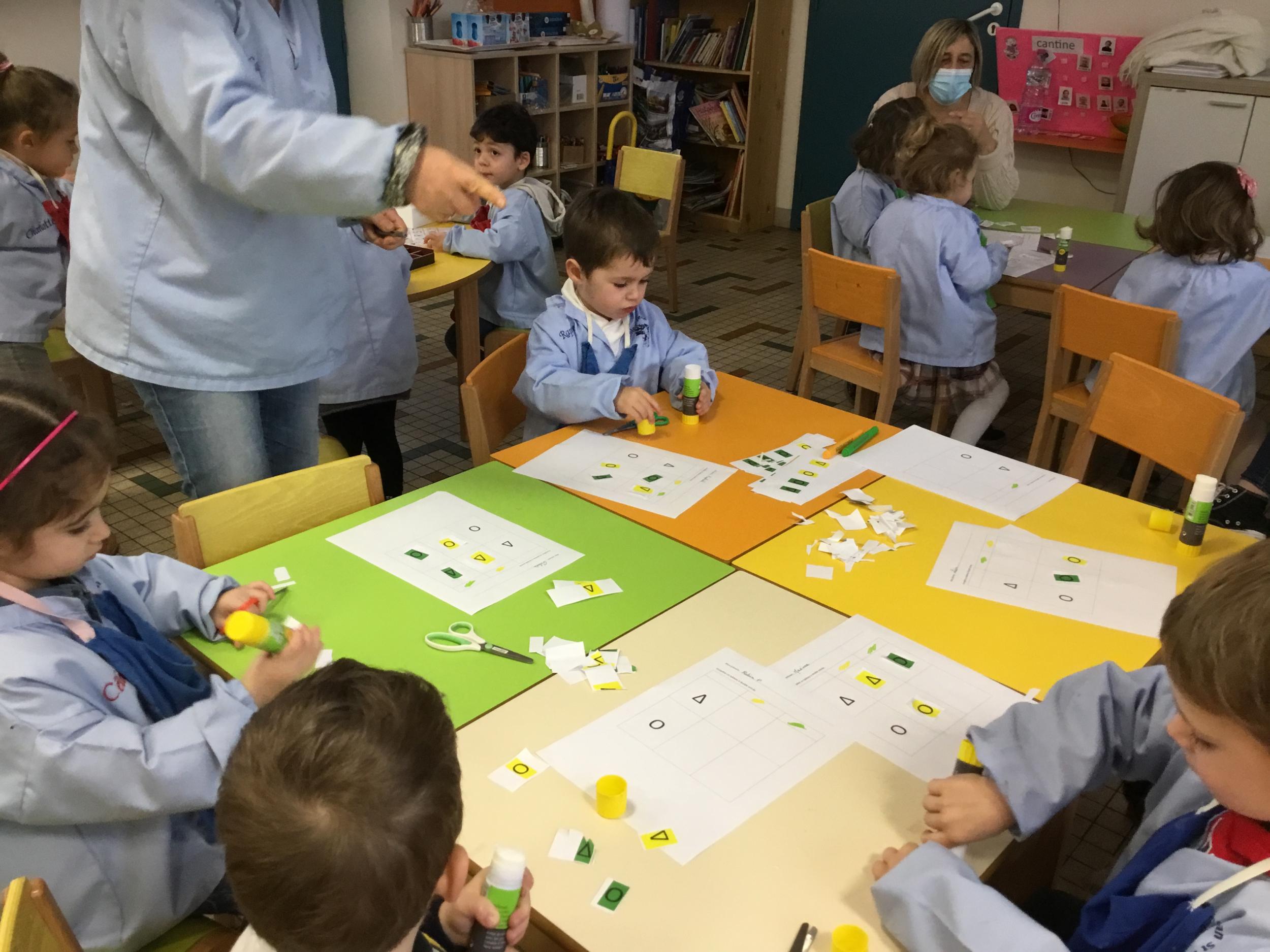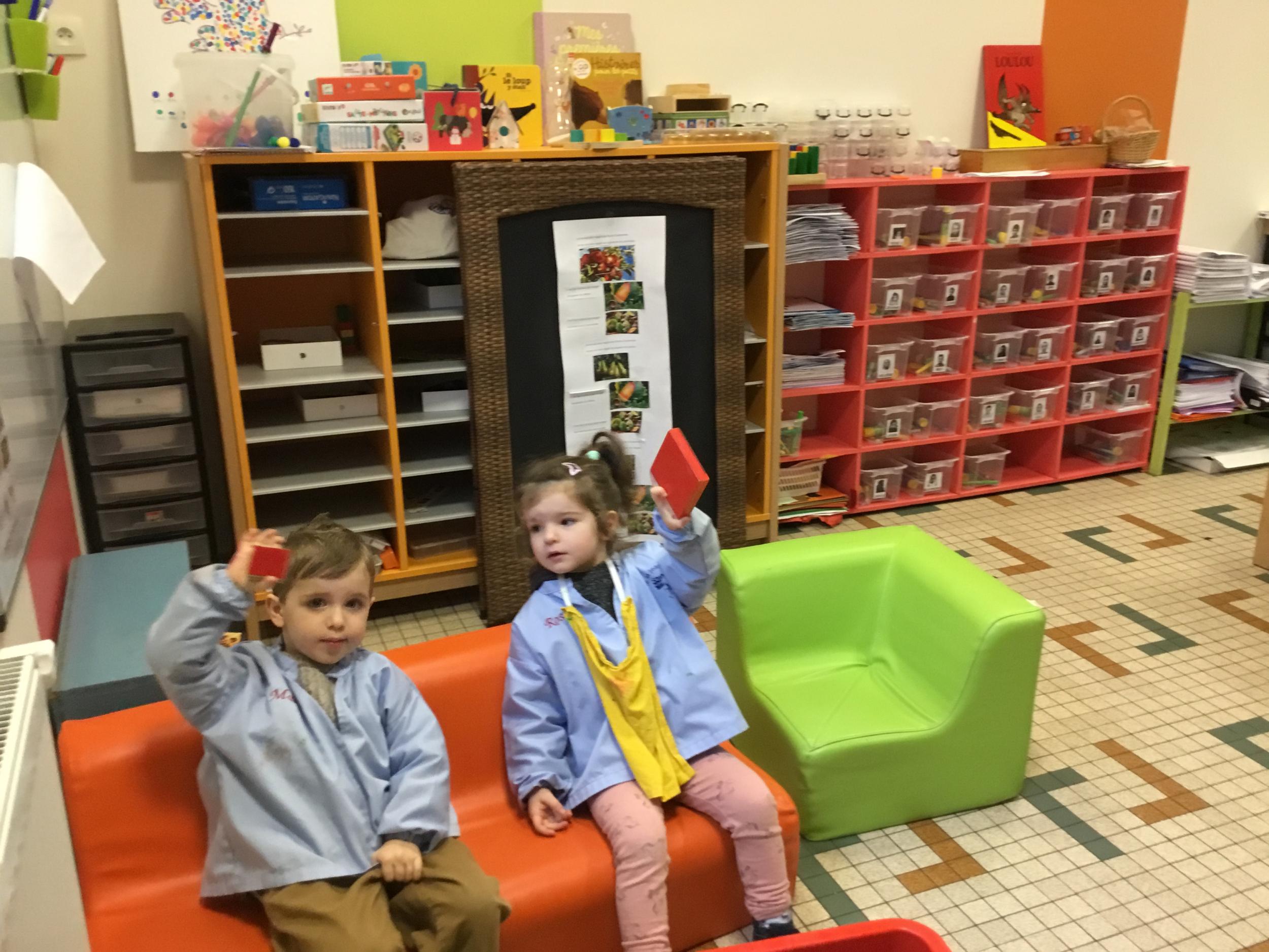 Après avoir manipulé, joué avec les différentes formes, après avoir appris à les nommer, les avoir triées, classées de différentes façons , nous apprenons à compéter un tableau à double entrée .