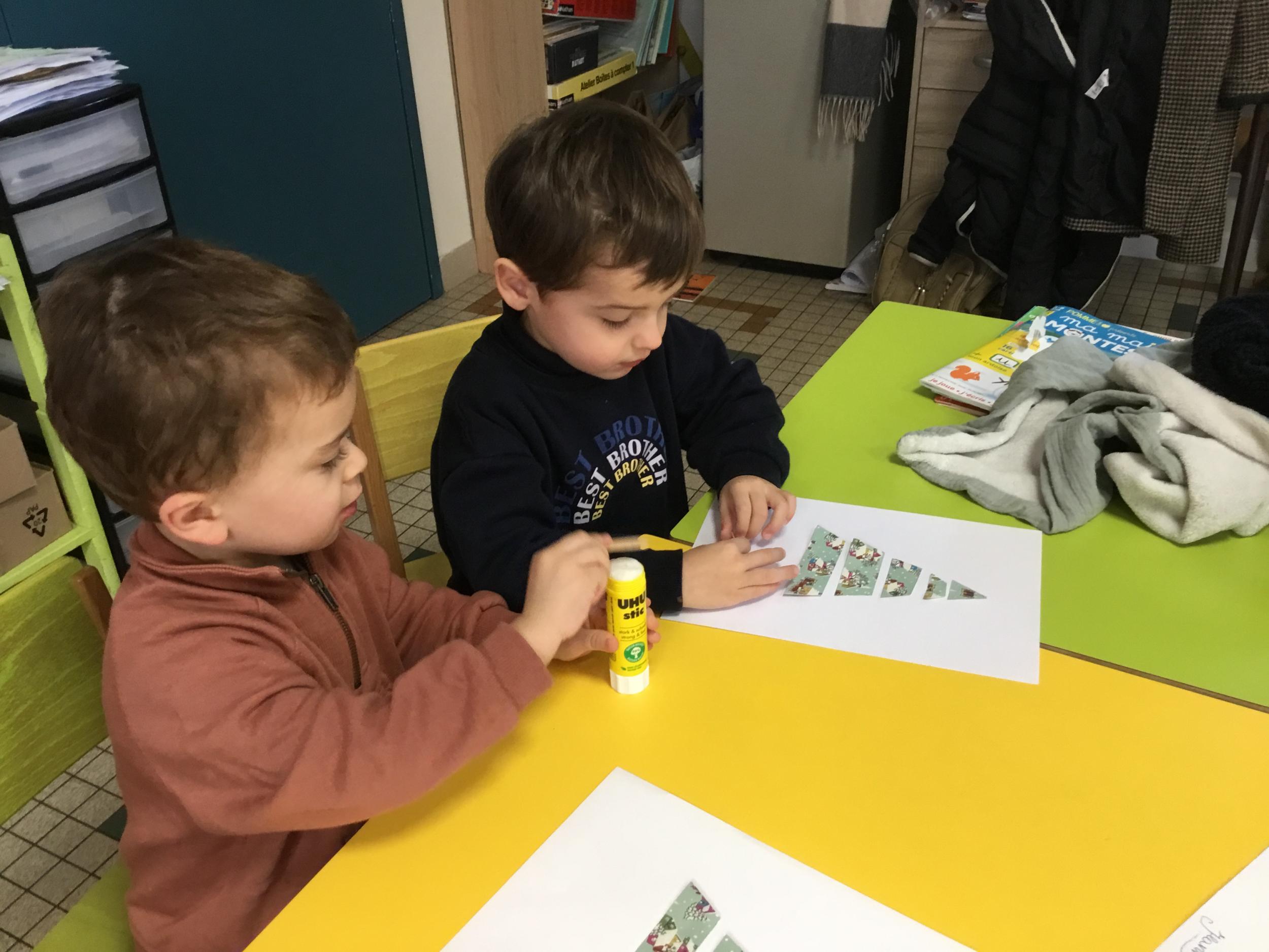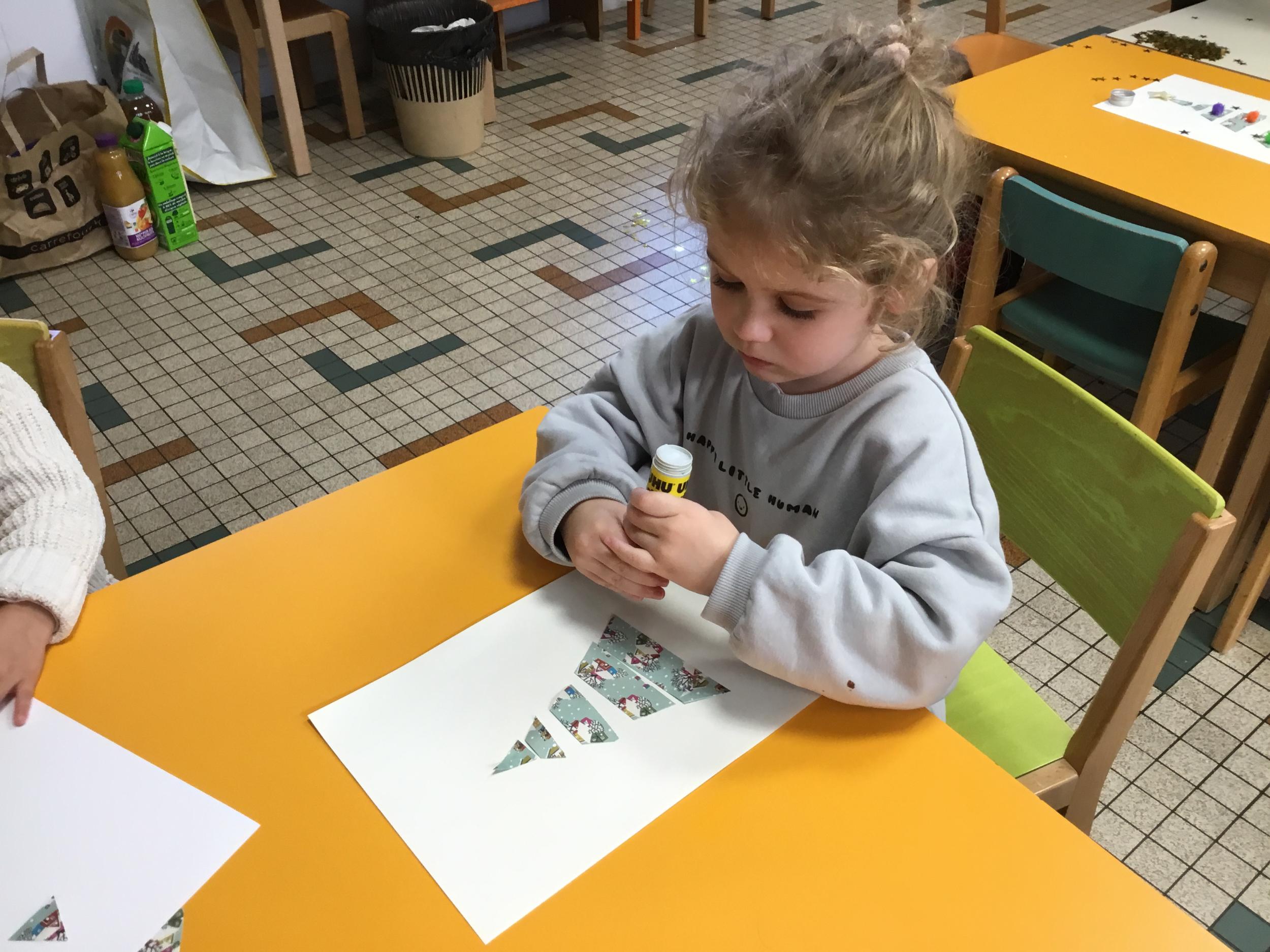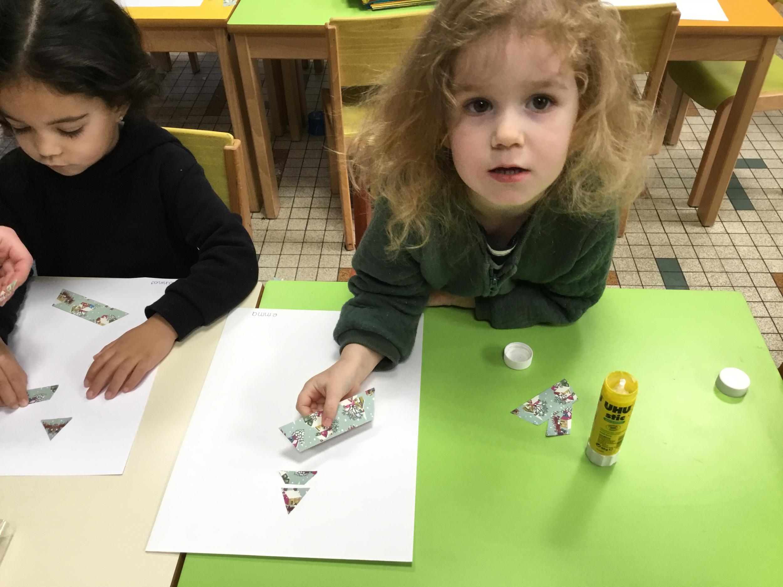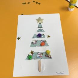Petite et moyenne section 28/11/2025 Chaque élève a collé les bandes de la plus petite à la plus grande pour construire un sapin de Noël. Puis chacun l’a décoré .