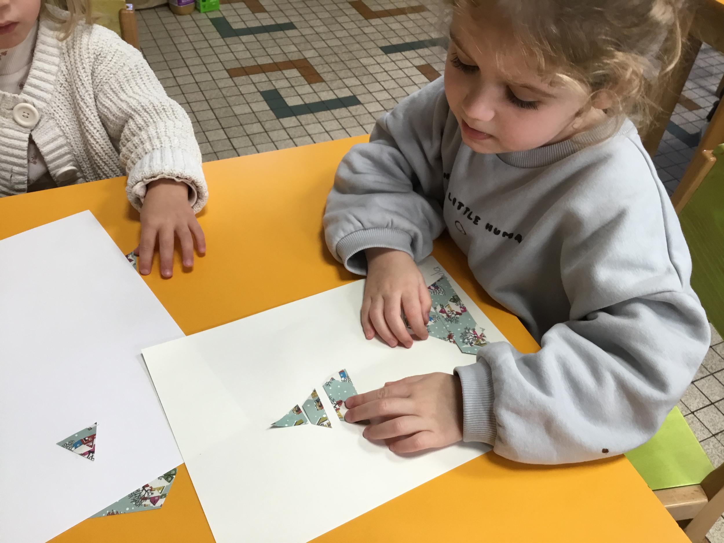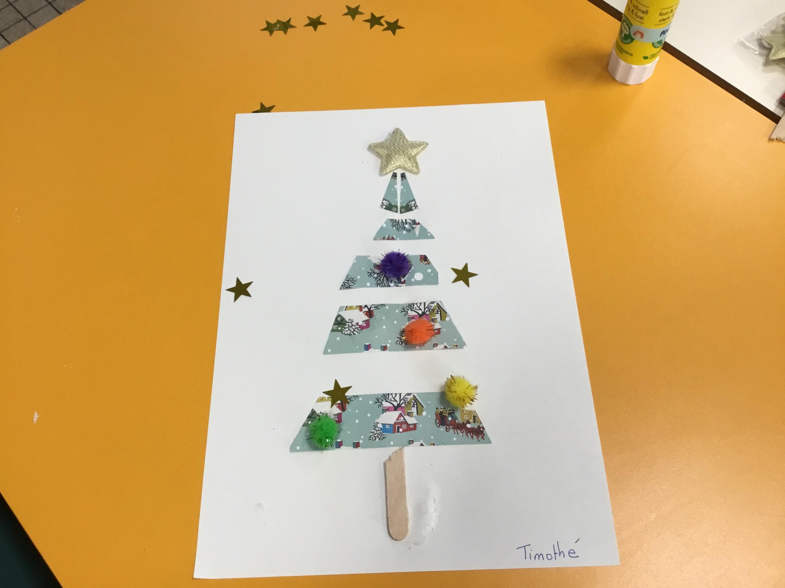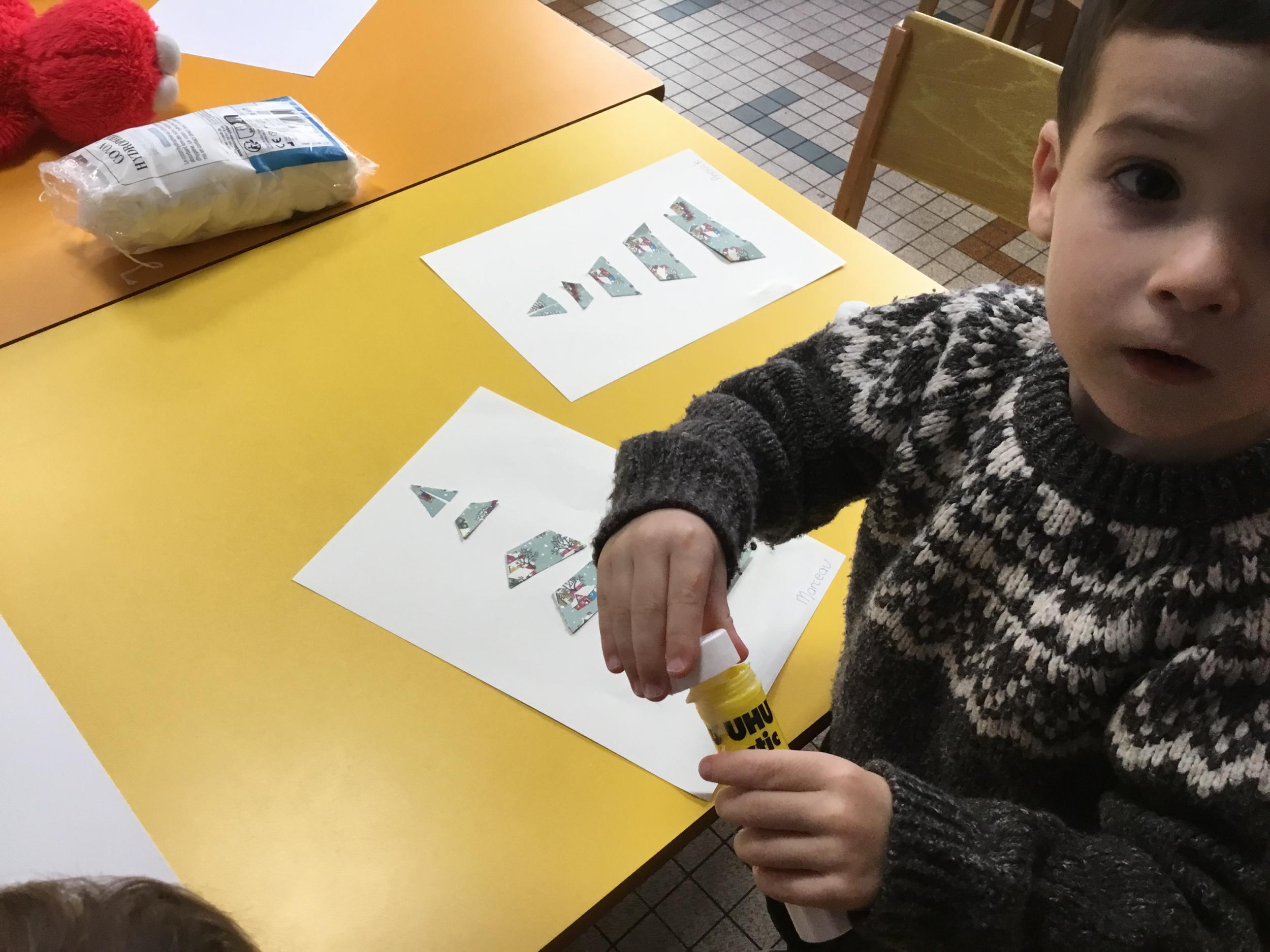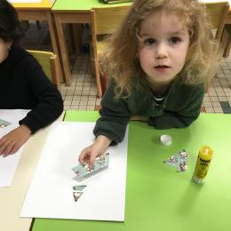Petite et moyenne section 28/11/2025 Chaque élève a collé les bandes de la plus petite à la plus grande pour construire un sapin de Noël. Puis chacun l’a décoré .