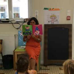 Les enfants ont écouté l’histoire de Tom … Ils ont tous été très attentifs. Les illustrations de l’album nous ont permis de repérer certaines formes mais surtout de faire des hypothèses… car Tom va travailler en vélo dans un lieu où il y a des singes, des acrobates, des éléphants….