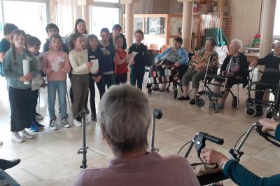 Comme les autres classes d'élémentaire, une moitié des CM1 a rendu visite aux résidents du Refuge protestant.